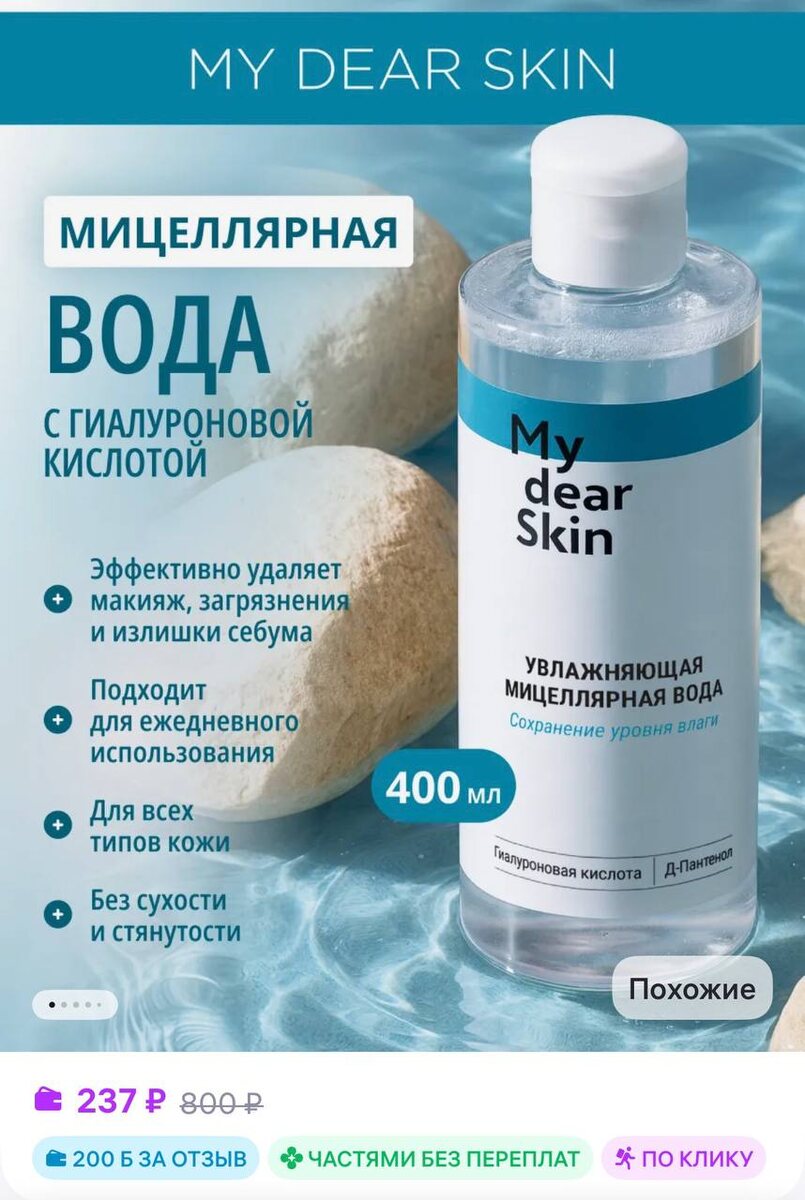 ! My dear Skin Мицеллярная гиалуроновая вода для всех типов кожи https://www.wildberries.ru/catalog/820372022/detail.aspx?size=1228776737 ✅ Канал по скидкам 🔣 Бот с промокодами