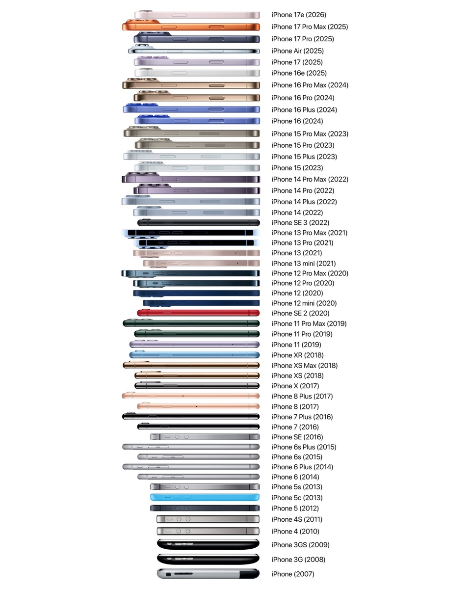 Классическая стопка со «всеми моделями iPhone» на этой неделе обновилась на еще одно устройство сверху. Какое ваше любимое?