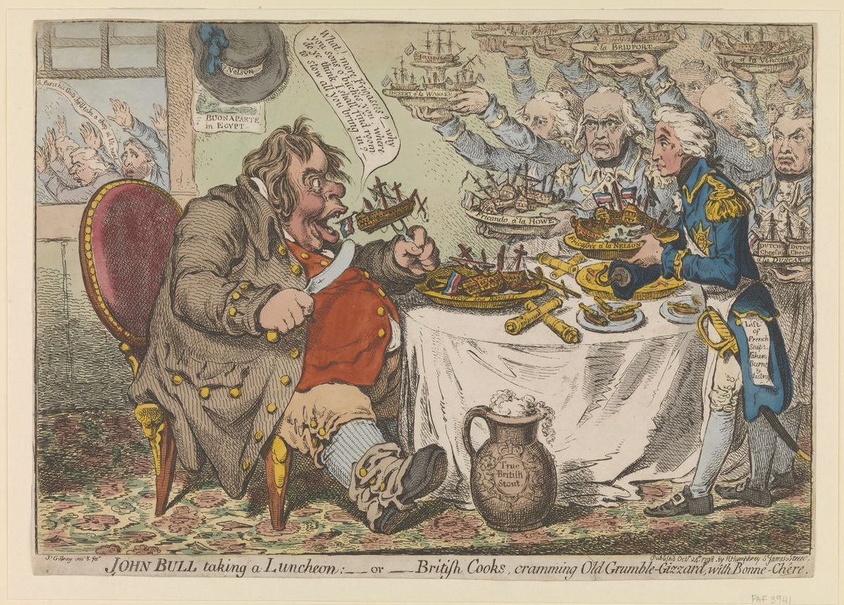 Граф Нулин из одноименной поэмы Александра Сергеевича Пушкина возвращается из-за границы с «с тетрадью злых карикатур». О чем же идёт речь? О весьма забавном и, вместе с тем, грозном оружии, которое было изобретено в Англии во второй половине 18 века. «Отечество карикатуры и пародии» - так именовал наш великий поэт Англию Георгианской эпохи. Это было время правления британских монархов Георга III и Георга IV (1760-1830), поистине «золотой век» английской карикатуры. Первые профессиональные карикатуристы в Европе появились именно в туманном Альбионе. Начиная со второй половины 18 века английский рынок был наводнен сатирическими листами, в которых бравые газетчики того времени оперативно и остро откликались на все текущие события, в том числе и на внешнеполитической арене. Сотни художников в сотнях изданий ежедневно печатали карикатурные листы, каждый тиражом от сотни до нескольких тысяч экземпляров. Несколько десятков крупных лондонских гравировальных мастерских работали кругл