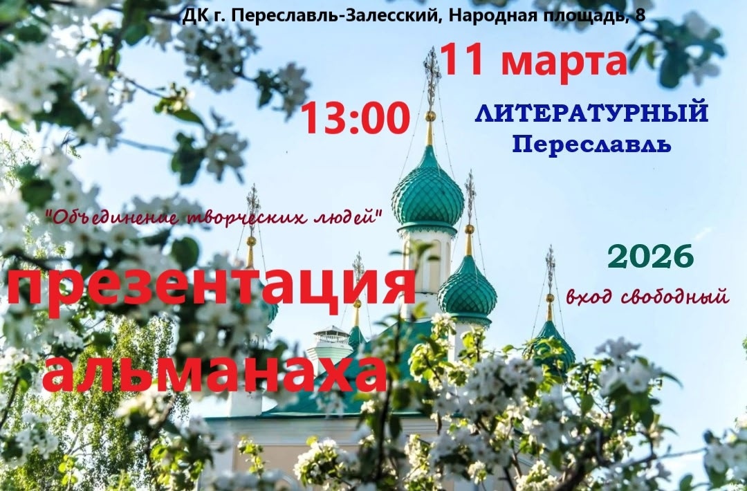 Дорогие друзья! 11 марта в ДК Переславля состоится презентация нового выпуска Литературного Переславского альманаха. Моя подборка также была в этом выпуске опубликована. В том числе, самое важное для меня самой произведение "Смерти нет. Есть только Ты и Плещеево озеро".