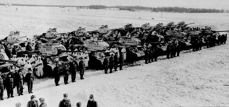 » Танковая колонна называлась «Димитрий Донской». Танки приобрели на пожертвования православных верующих. Все началось еще в 1942 году. 30 декабря митрополит Сергий обратился к архиереям, священникам и приходским общинам Русской православной церкви. Митрополит призвал повторить пример Преподобного Сергия Радонежского и послать вместе с молитвами вещественное показание участия в общем подвиге - колонну танков имени Димитрия Донского. Митрополит Сергий написал письмо к Иосифу Сталину с просьбой открыть специальный счет в Госбанке для сбора пожертвований. И такой специальный счет открыли. Православные верующие смогли перечислить собственные средства на бронетехнику для Красной армии даже в тех местах, где не было действующих церквей. Всего собрали восемь миллионов рублей. На эти деньги на Нижне-Тагильском танковом заводе построили сорок танков и 7 марта 1944 года их передали советским танкистам.