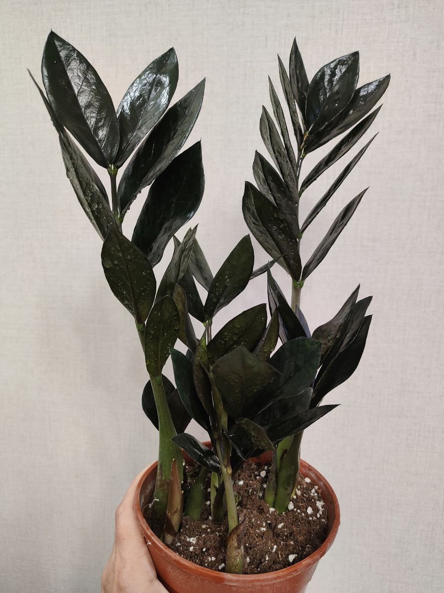 теплом и жизнью. Сегодня я хочу познакомить вас с моим новым зеленым соседом — замиокулькасом равен! Точнее, не совсем зеленым: листья у него почти черные. Говорят, что это «долларовое дерево» притягивает в дом благополучие.✨ Но для меня он ценен не только приметами. Меня покорили его глянцевые, строгие листья — в них есть какая-то спокойная, графичная красота. Теперь у меня живут три вида замиокулькасов: самый распространенный и всем привычный замиокулькас замифолия, карликовый замиокулькас - зензи и вот теперь черный - равен. А у вас есть дома замиокулькас? Делитесь фото своих «зеленых друзей» в комментариях! 👇 #замиокулькас #новоерастение #комнатныецветы #уютныйдом #всесвязано