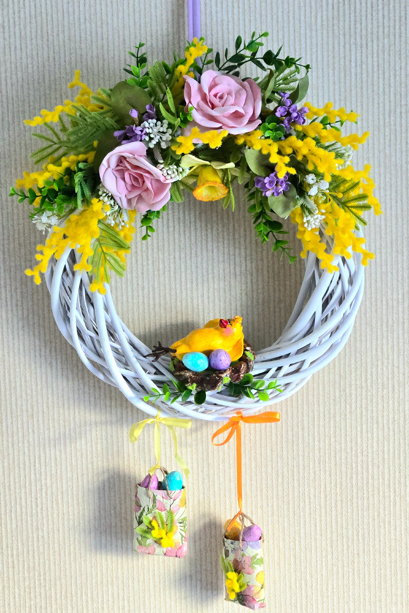 Нууууу,вы понимаете,да?Что скоро большой праздник. Подготовка к нему началась заранее. Сделала 2 пасхальных веночка. Использованы фом,папье-маше,искусственная зелень,ротанг и всяко разно из подсобного материала. Я вообще часто использую то,что под рукой есть дома. Эти веночки не стали исключением. Первый готов,второй,скорее всего выложу здесь завтра.