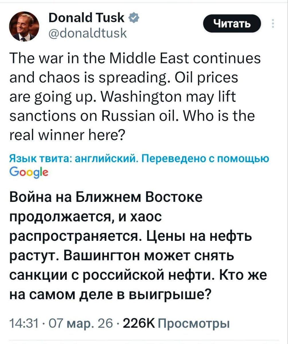 Война на Ближнем Востоке? Мировой нефтяной кризис? Всемирный хаос? Премьер Польши Туск провел расследование и выяснил, кто виноват.