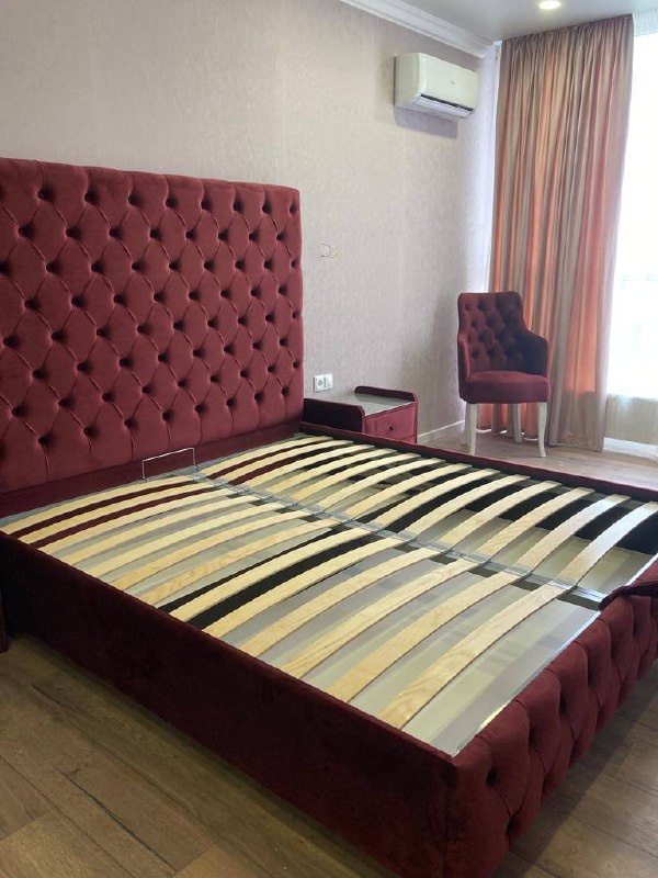 Стильный спальный комплект мебели в глубоком бордовом цвете прибыл в свой дом