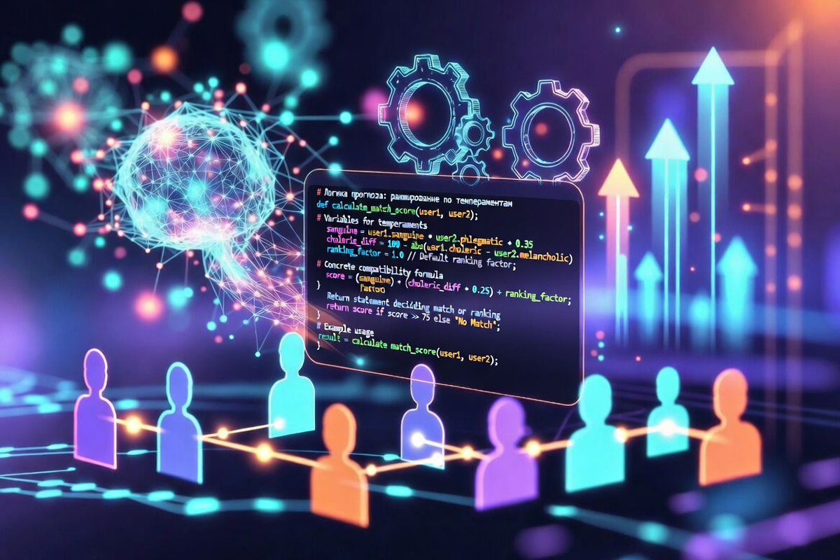 Несколько дней назад была сделана одна из самых важных частей проекта: логика прогноза — то, почему люди будут подбираться друг к другу, на чём это будет базироваться, как это будет ранжироваться и на что оно будет смотреть. Эту логику мы сначала перевели в формульный формат (в Excel), а потом положили на сайт, протестировали — и она показала работоспособность. И это очень здорово. Потому что когда мы проводили слепые тестирования, подбор мы делали отчасти умозрительно: мы видели шкалы, видели, как одни темпераменты относятся к другим, и шли по этой логике руками. А теперь оно полностью автоматизировано — и это не может не радовать 🚀 Теперь впереди не такая интересная работа: доведение дизайна, функционала, всей остальной платформы. Переписка, добавление фотографий, регистрация — вот это вот всё. Много нудной, скучной работы. Но спасибо современному миру — есть нейросети. Они реально сильно упрощают процесс. Работа с нейросетью — занятие очень медитативное. Ты минуту работаешь, потом