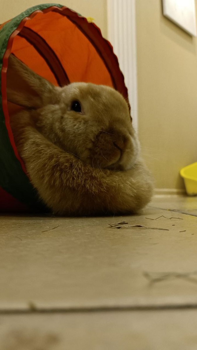 " Некоторые начинают думать, что это особенность породы, а некоторые даже думают, что кроликов уж слишком много кормят! 😱🥕 На самом же деле, это называется подгрудок – место в районе шеи с большим количеством жировых складок. Чаще всего его можно увидеть у самок, но у самцов он тоже есть. В подгрудке у кролика пахучие железы, благодаря которым можно пометить территорию, просто потеревшись Кроло-мамы часто выдергивают оттуда пух для того, чтобы маленьким крольчатам было как можно более комфортно 🐰 А для того, чтобы еще лучше увидели всё своими глазами, Санса специально легла для Вас