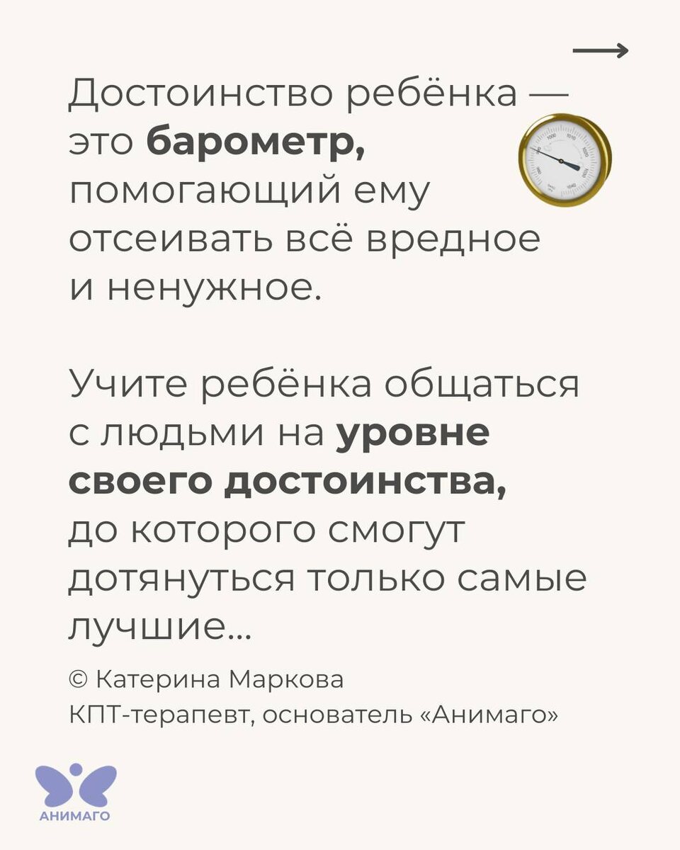 ! Когда малыш учится ценить себя, он естественным образом выстраивает здоровые отношения с окружающим миром. Однако даже ребёнок со здоровой самооценкой время от времени может испытывать внутреннюю тревогу. А если нужна дополнительная поддержка, специалисты «Анимаго» проведут Чекап и помогут наладить контакт с ребёнком. Сейчас действует скидка 20% по промокоду МАРТ20 в честь 8 марта (акция доступна только 7-9 марта). Записаться — по ссылке.