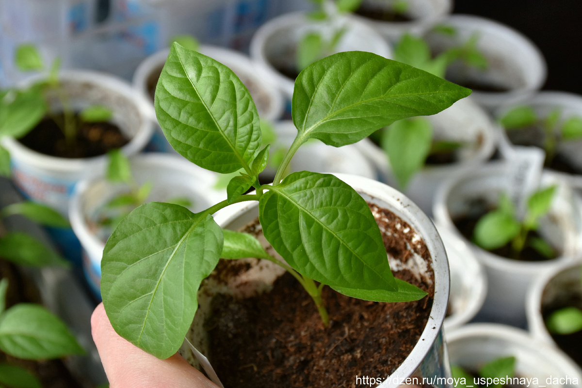 "У рассады перца выросло 4 настоящих листа". Что делаем дальше. Первая серьёзная подкормка