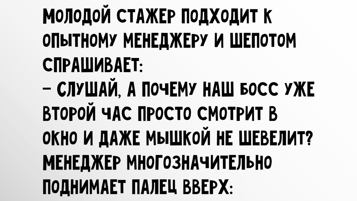 Напишите в комментариях, какой анекдот вам понравился больше всего? А может быть, у вас есть своя эпичная история про «косяк» перед шефом? Делитесь, посмеемся вместе!