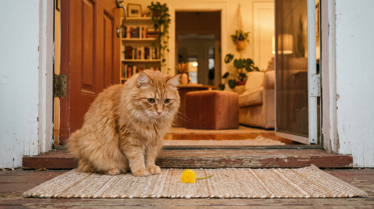 Кот. Он шёл по коридору, в зубах у него была маленькая веточка. Сухая, с парой листиков. Он подошёл к моей двери, аккуратно положил веточку на коврик, сел рядом. Просто сел и стал смотреть на дверь. Ждать.