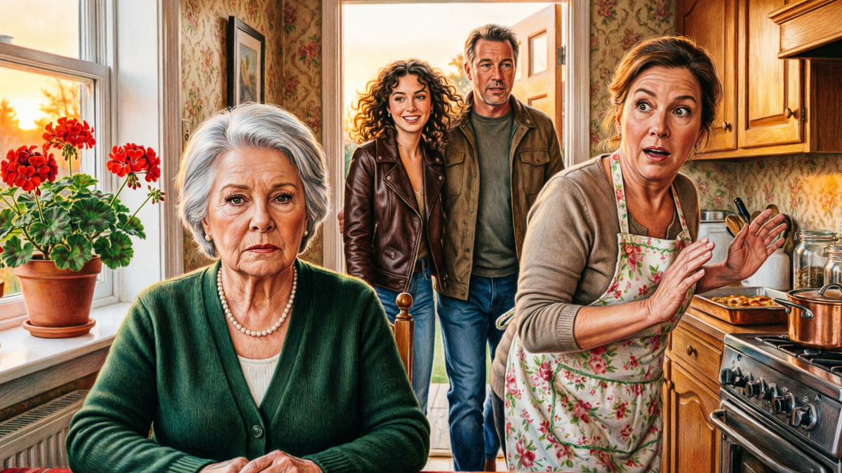Елена вернулась к плите, где на маленьком огне тихо булькал бульон. За окном уже смеркалось, фонари на улице зажглись рано, в октябре темнело быстро. На подоконнике стояли три горшка с геранью, и в тёплом кухонном свете они казались особенно живыми и домашними.
