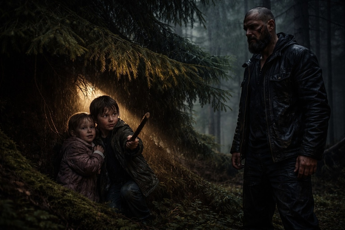 Их было двое. Мальчик лет семи и девочка лет пяти. Они сидели под большой елью, прижавшись друг к другу, и дрожали. Оба в лёгких курточках, не по погоде. Мальчик сжимал в руке обломок ветки, пытаясь заслонить сестру.