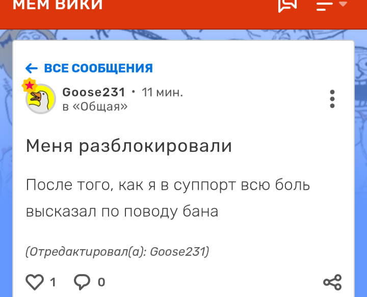 Вобщем, меня разбанили на Фэндоме. И мало того – даже статус админа вернули/не тронули. Короче, щас всё хорошо.