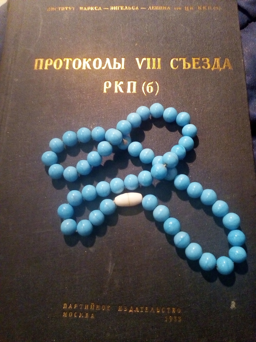 Эти две по 200 р.: Книжка и бусы... А эти (ниже) по 50 и по 100. Какие по чём... Во-первых, могу ошибиться. и обмануть, чего не хочется ( я - честный!).. А во-вторых, какая хрен разница? 25 рублей туда-сюда... Ну, считайте любой предмет ниже - 75 рублей... Примерно... :0))))) Поехали? На предмете надпись: "23.02.1975 МаМа".... Прикольно, чё... :0))) Тут надписи нет... Наверно, жена подарила мужу... Мол, слышь, кобель... кастрацию хочешь? Берц... Нефритовое... Мне на вторую фалангу мизинца, увы... Малахит... Клипса. Перламутр. Наверно, Германия 20-х годов. Но это не точно.... :0) пс Ну, как Вам мои покупки?