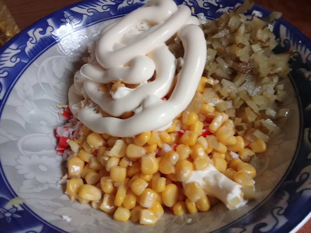 Друзья, салат из крабовых палочек с картофелем, который я приготовила на скорую руку, многие восприняли как новинку или нечно необычное Да! Я иногда готовлю такой салат, когда у меня в морозилке остается несколько крабовых палок. Все ингредиенты всегда закладываю на свой вкус... За неимением свежего огурца в этот раз добавила часть маринованных огурцов, одну вареную картофелину, остатки консервированной кукурузы, два яйца и майонез "Махеев". Салат на вкус получился очень нежный и все продукты на вкус оказались сочетаемые В общепите, друзья, на мой взгляд встречаются абсолютно немыслимые сочетания продуктов в блюдах. С этим я столкнулась, когда работала поваром холодного цеха на одном предприятии. Это просто какое-то безумие и отсебятина Салат "Восточный" с куриным мясом, рисом и мандаринами или апельсинами я готовить не могла по технологии и дольки мандарин скромно укладывала сбоку готового блюда. Не дай бог положить внутрь салата... Винегрет с морской капустой для меня был блюдом, кот