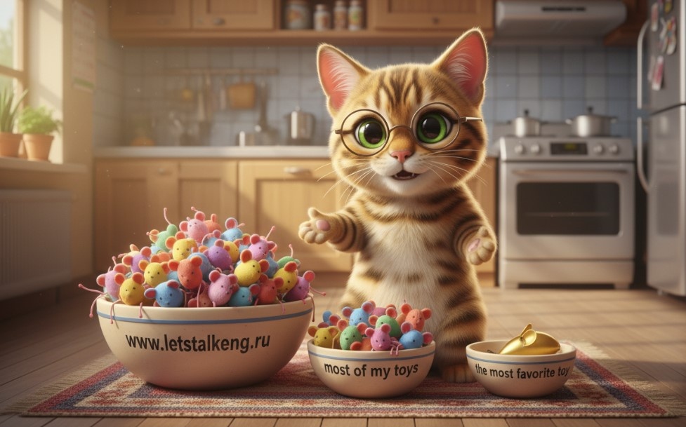 Привет-привет! Мур-мяу! Я — Фаня, ваша пушистая бенгальская учительница. Я просто обожаю ловить игрушечных мышек, вкусно покушать и… английскую грамматику! Сегодня мы разберем одну paws-itively (лапотрясающе) интересную тему, которая часто путает новичков. Мы узнаем, как правильно говорить о “большинстве” и как стать “самым-самым”. Готовы навострить ушки? Тогда поехали! Слово most переводится как «большинство» или «большая часть». Мы используем его с существительными, когда говорим о людях или вещах вообще, в целом. Представьте, что я говорю про всех-всех котиков в мире. Я не имею в виду только моих соседей, я говорю про всю пушистую братию! В этом случае мы ставим most сразу перед словом, без всяких мелких словечек вроде the, my или this. Most cats love sleeping in boxes. (Большинство кошек любят спать в коробках). Most students like online learning. (Большинству студентов нравится онлайн-обучение). I have some bad days, but most days are good. (У меня бывают плохие дни, но большинств