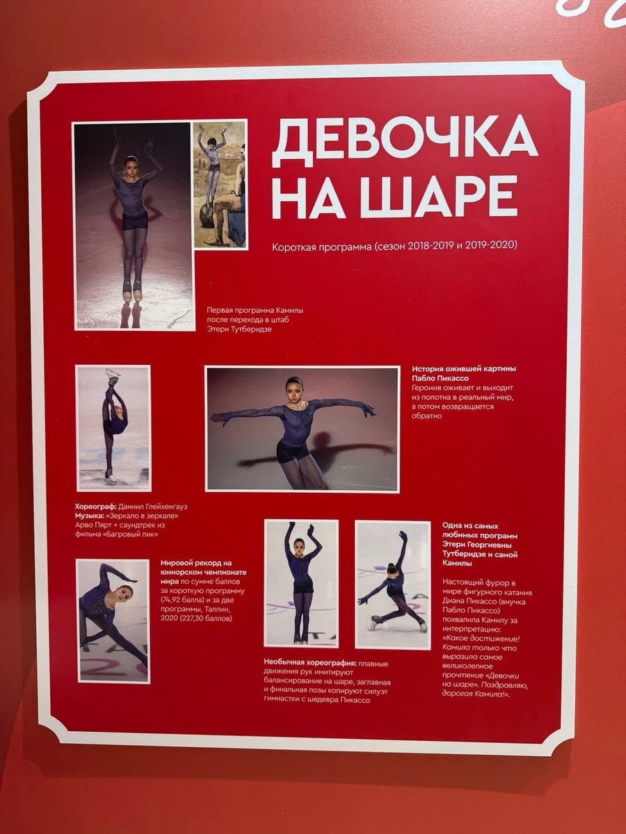 В рамках проекта «Добро всегда возвращается» в холле арены «Трактор» в Челябинске была устроена выставка с соревновательными платьями Камилы и описанием ее знаковых программ.