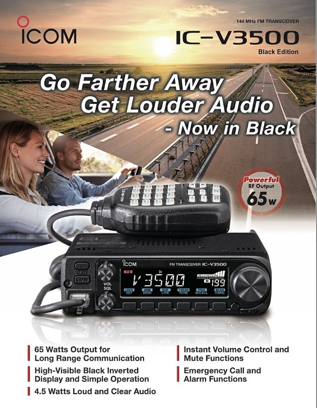 Компания Icom анонсировала выпуск новой версии своей популярной мобильной УКВ-радиостанции IC-V3500 Black Edition, разработанной специально для радиолюбителей, ценящих надёжность, простоту управления и высокую выходную мощность. Устройство работает в диапазоне 144–148 МГц (2 м) и обеспечивает максимальную выходную мощность до 65 Вт, с возможностью выбора из четырёх уровней (65 / 25 / 10 / 5 Вт). Это делает его одним из самых мощных решений в своём классе для уверенной дальней связи. Особое внимание уделено удобству эксплуатации: