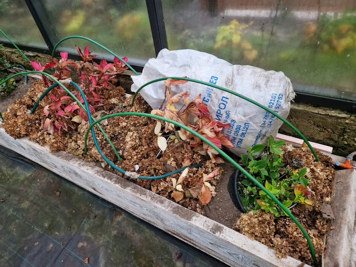 Основное, что было очень важно сделать, это раскрыть прикопанные в теплице голубику, крупнолистную гортензию и молодые розы, которые в предверии 30-градусных морозов я еще дополнительно укрыла под дуги спанбоудом. А вот снять это дополнительное укрытие не смогла. Заносы на дорогах, скользкая горка по дороге, короткий день (я в сумерках не езжу), болезни да неожиданный отпуск Египет... Вот так и дотянули до марта.