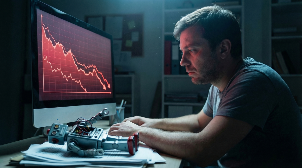 Робот открывал позицию за позицией, усреднял, хеджировал — делал всё, что обещал. Только рынок об этом не знал.