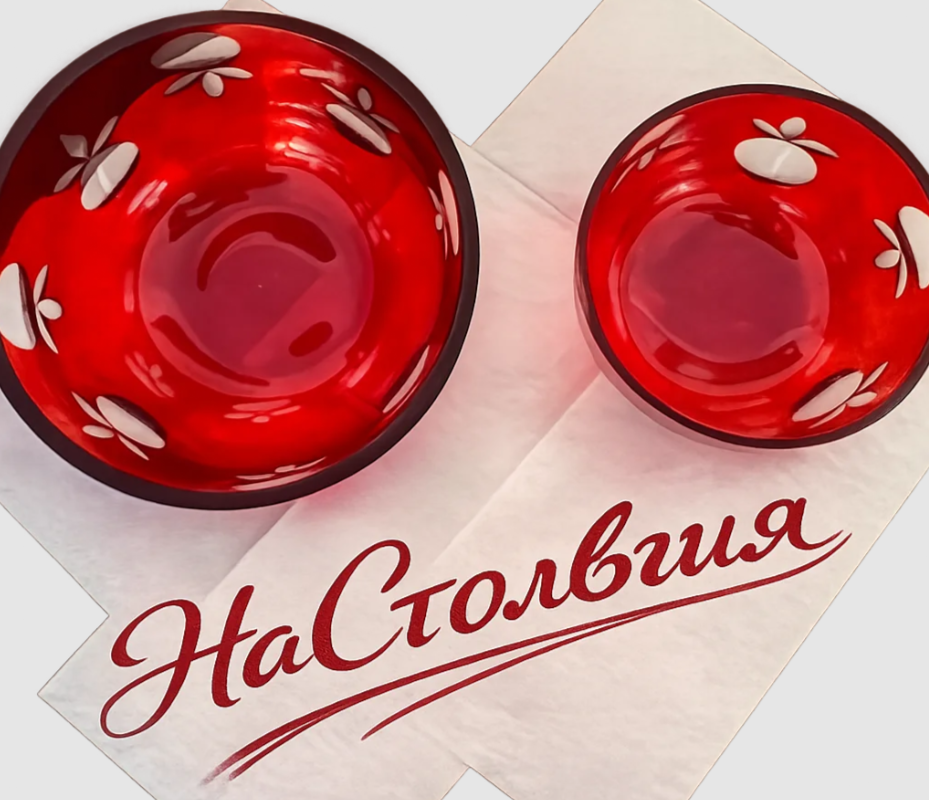 Приветствую вас, друзья, на канале НаСтолЬгия. Представляю вашему вниманию два салатника красного цвета. В эпоху СССР предметы быта нередко становились подлинными произведениями искусства. Среди них особое место занимают изделия из цветного стекла, например, салатники рубинового оттенка с алмазной гранью. Эти предметы не просто служили для сервировки стола: они воплощали эстетические идеалы времени, демонстрировали мастерство стеклодувов и инженеров, становились неотъемлемой частью домашнего уюта. Перед нами — образец утончённого вкуса и технического совершенства. Глубокий рубиновый оттенок, напоминающий переливы спелого граната или закатные краски неба. Этот цвет не тускнеет со временем, сохраняя насыщенность и теплоту. Лаконичная чаша с плавными, почти скульптурными изгибами. Устойчивое основание обеспечивает практичность, а слегка расширенный верх создаёт ощущение лёгкости и воздушности. Изящная алмазная грань, геометрическая резьба, превращающая поверхно