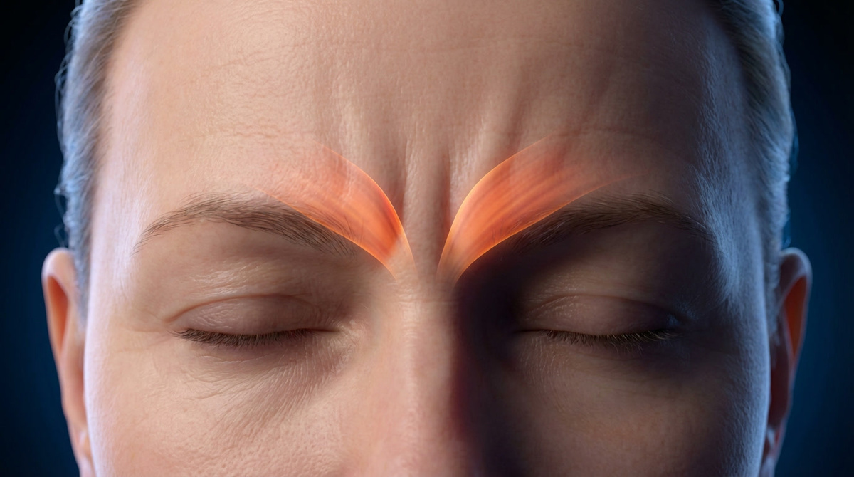 Представьте себе ткань, под которой туго затянули резинку. Коже просто некуда деваться - она закладывается в складку, образуя ту самую межбровку. Вы можете мазать ее самым дорогим кремом, но пока мышечный зажим стягивает ткани к центру лба, морщина не исчезнет.