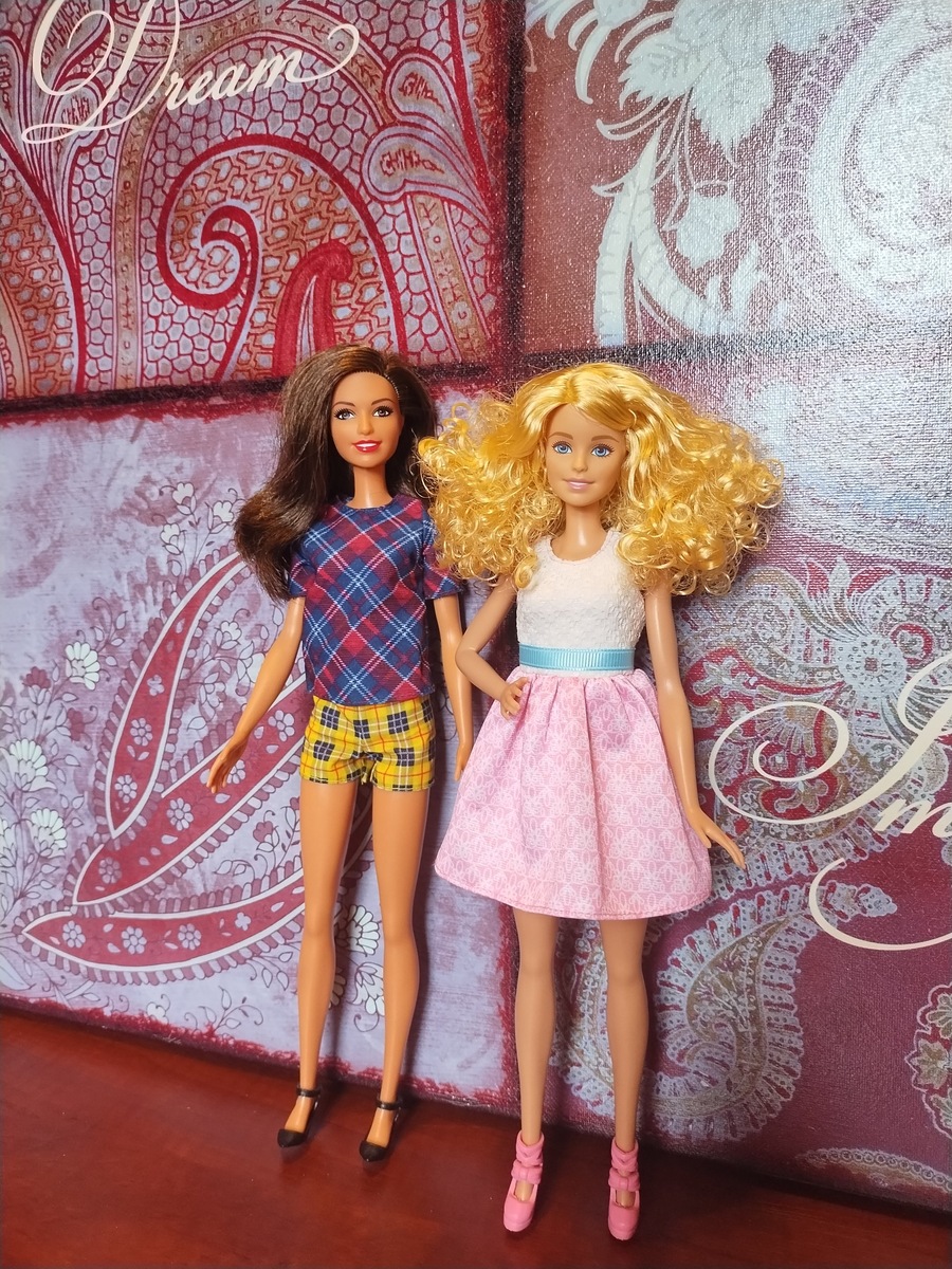 Сначала Barbie Fashionistas Tall Hispanic # 52 Plaid. Очень красивая фешенка, латиночка, как я понимаю, высокая, выше стандарта. Одета была в оригинальный костюм, клетчатая футболка и шорты