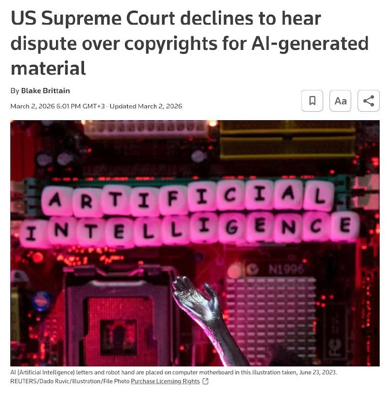 Такое решение вынес суд по делу Стивена Талера, который с 2018 года пытался оформить авторские права на картину «A Recent Entrance to Paradise», созданную его нейросетью DABUS. Мужчина утверждал, что права должны принадлежать ИИ, а не человеку, потому что изображение сгенерировано автономно. Суд закончил этот спор очень просто: авторское право может принадлежать только человеку. Такое решение, по словам адвоката мужчины, будет иметь негативные последствия для развития ИИ в креативных индустриях. Интересно получается, что в США закрепляется именно право человека на авторство. Значит, полностью автономные произведения, в том числе текст, сгенерированный через ИИ, по сути, никак юридически не защищены. Если мы правильно понимаем, то ни лицензировать, ни монетизировать эти работы попросту невозможно. Для этого придётся включить допотопную технологию — человека. @lobushkin