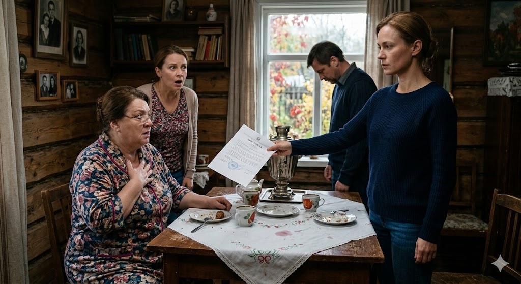 — Что это? — хрипло выдавила Зинаида Петровна, отступая на шаг от стола, словно бумага могла ее укусить. — Какая еще дарственная? Дом же общий! Паша сказал, что он по наследству перешел, в браке! Значит, совместное имущество!
