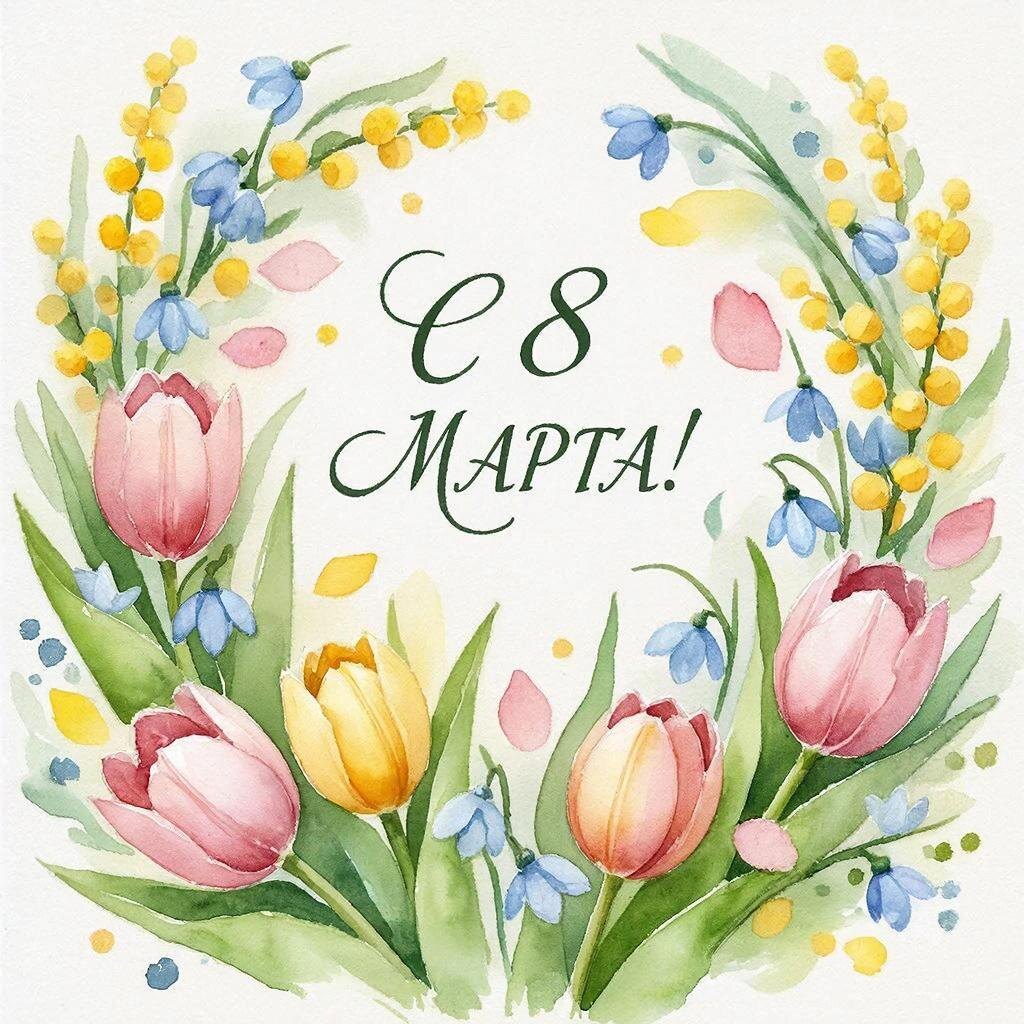 Дорогие женщины! С праздником весны! Пусть каждый ваш день будет таким же ярким и прекрасным, как первые цветы. Будьте любимы и счастливы!