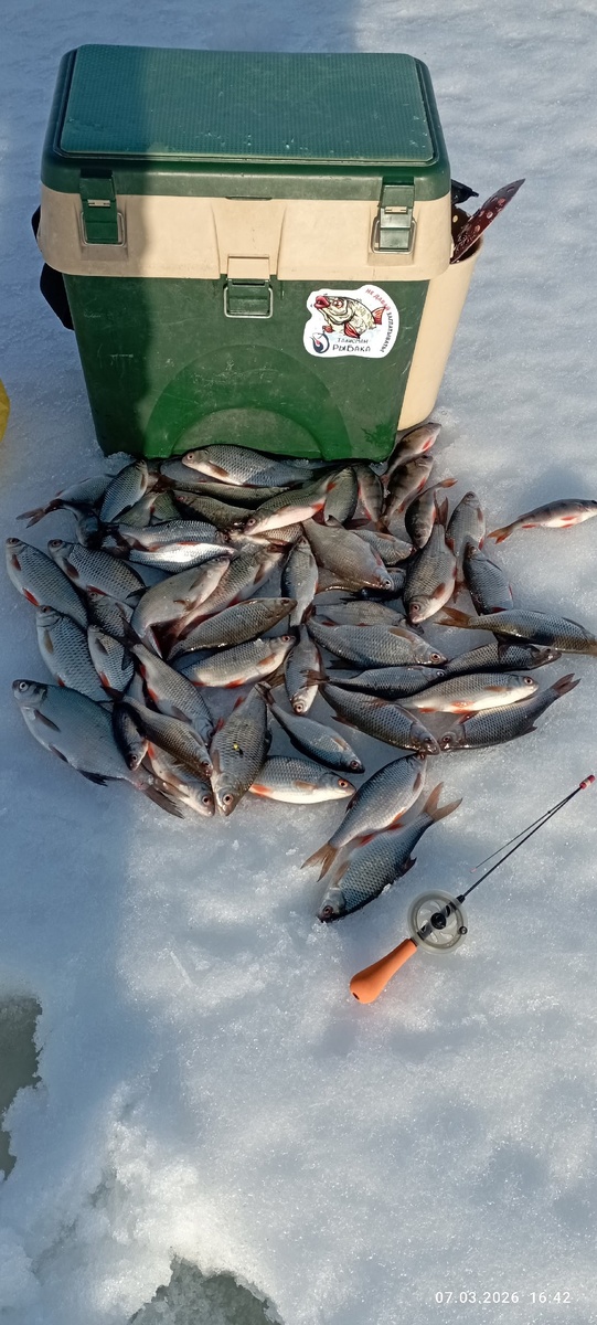 07.03.26 Железногорское ВДХ. под Кораблями с 08-00 до 17-00 клëв очень слабый, ловил на безмотылку.