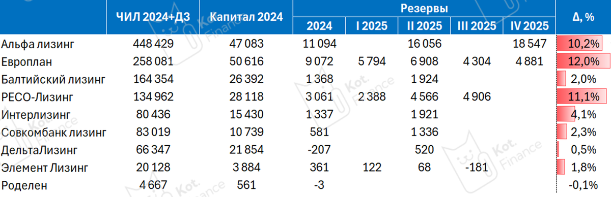 Уже две крупные лизинговые компании отчитались об убытках по итогам 2025 год: Альфа-лизинг и Элемент-лизинг. Пока в плюсе Европлан, но и тот начислил резервы 12% от чистых инвестиций в лизинг. К чему всё придет и на чём можно заработать? Лизинг – это такая же (как кредит) перепродажа денег но под конкретный актив: транспорт, технику, оборудование, или даже недвижимость. Актив остается собственностью лизинговой компании до выкупа. Клиент получает желаемое имущество с минимумом бюрократии и налоговыми льготами, а лизинговая компания страхуется авансом клиента. Но иногда всё идёт не по плану Три компании отчитались по МСФО за 2025 год и уже 2 в убытках: Альфа и Элемент. При этом, Европлан продолжает резервировать значительные суммы, списывая свой портфель. Такой же подход у Альфы. Отчет Элемент-лизинга разберем отдельно, он того стоит… Мы разбирали самые доходные облигации в лизинге, и делали акцент на рейтинг от А- до АА. Мы видим перспективы именно в ТОП-20. Но кто ищет риск и впечатлен