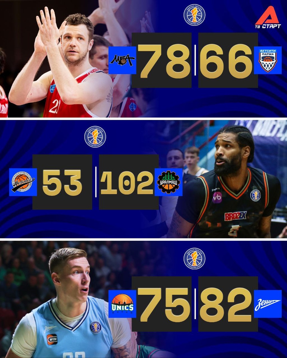 ! МБА-МАИ не отдала ни одной четверти БЕТСИТИ-ПАРМЕ (78:66), «Уралмаш» разгромил «Автодор» (102:53), а «Зенит» впервые в сезоне обыграл УНИКС (82:75). Смотрите Единую Лигу ВТБ на телеканалах «Старт» и платформе TVSTART.RU 🖥 Подписывайся на ТВ СТАРТ в MAX📲