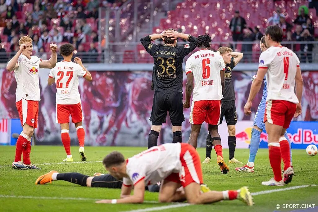«РБ Лейпциг» добился волевой победы в домашнем матче Бундеслиги против «Аугсбурга». Судьба встречи решилась уже в компенсированное время — хозяева победили 2:1. Первый тайм завершился неожиданным преимуществом гостей. На 39-й минуте Робин Фелльхауэр замкнул передачу Фабиана Ридера и вывел «Аугсбург» вперед — 0:1. При этом ранее у гостей был шанс увеличить преимущество, но Кевин Шлоттербек не реализовал пенальти — удар с точки отразил Мартен Вандевордт. Во втором тайме «Лейпциг» усилил давление и сумел сравнять счет. На 77-й минуте Ян Диоманде точным ударом в угол ворот сделал счет 1:1. Когда матч уже катился к ничьей, хозяева вырвали победу. На 90+2-й минуте защитник «Аугсбурга» Артур Шавес срезал мяч в собственные ворота после прострела — 2:1. • Итоговый счет — 2:1 в пользу «РБ Лейпцига**