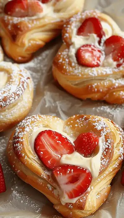 Булочка с клубничным кремом - восхитительная выпечка, в которой маслянистая слоистость традиционной булочки сочетается с нежной сливочно-сырной начинкой и сладкой сочной клубникой. Это лакомство идеально подходит для завтрака или в качестве десерта. В каждом кусочке гармонично сочетаются текстуры и вкусы: от хрустящих золотистых слоев теста до сливочной пикантной начинки и свежей клубники. Вот рецепт булочки с клубникой. Продукты необходимыедля приготовления: