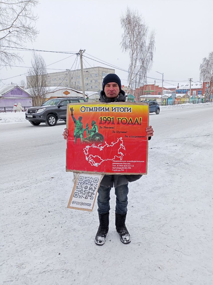 Провёл сегодня одиночный пикет в городе Тара Омской области со сбором подписей за восстановление Отечества и отмену незаконных решений