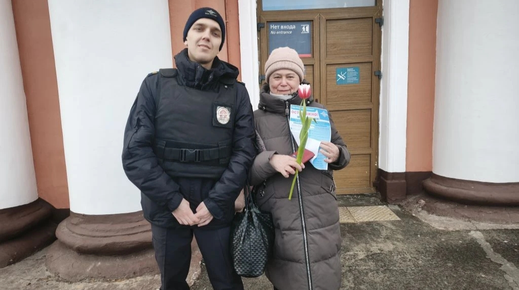 Полицейские подарили цветы пассажиркам вокзала «Брянск-Орловский»
