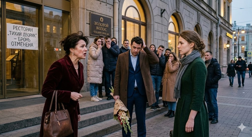 В центре этой группы, словно полководец перед проигранной битвой, металась Тамара Петровна. Её лицо было пунцовым, а прическа заметно покосилась. Заметив машину сына, она бросилась к ней, едва не сбив с ног швейцара.