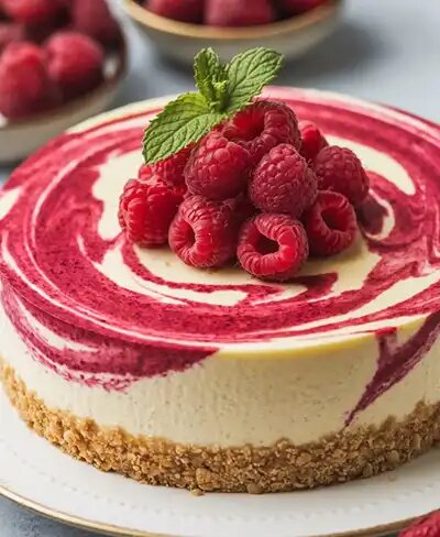 Этот нежный и восхитительный чизкейк с малиной - потрясающий десерт с маслянистой корочкой из крекеров, сочной сливочно-сырной начинкой и яркими малиновыми завитками. Идеально подходит для любого праздника или в качестве сладкого угощения для всей семьи! Вот рецепт чизкейка с малиной. Продукты необходимые для приготовления: