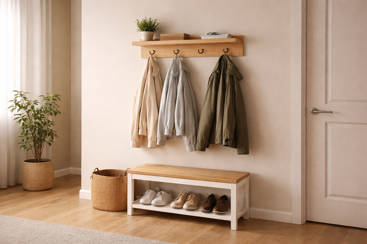 Всё это за секунду. Ещё даже не разулся. Странно что прихожей уделяют меньше всего внимания при уборке — хотя это первое что видишь когда приходишь домой. Настроение с порога. Разобрался за один вечер. Рассказываю что конкретно сделал. Тот же метод что работал с кухней, ванной и рабочим столом. Снял все куртки с крючков, убрал всю обувь с пола, вытащил всё с полок. Посмотрел на пустую прихожую. Она оказалась нормального размера — просто была забита. Дальше начал возвращать только то что реально использую каждую неделю. Две куртки — да. Одна пара сменной обуви — да. Зонт — да. Остальное разошлось по местам или было выброшено. Нашёл три вещи которых вообще не должно быть в прихожей: старые перчатки с дыркой, пакет с какими-то вещами «надо отнести», зарядка непонятно от чего. Всё ушло. Дальше — про главную проблему любой прихожей. Угадайте с одного раза. Обувь в прихожей накапливается незаметно. Снял — бросил рядом с другой парой. Потом ещё одна пара. Потом гости оставили. Через месяц н