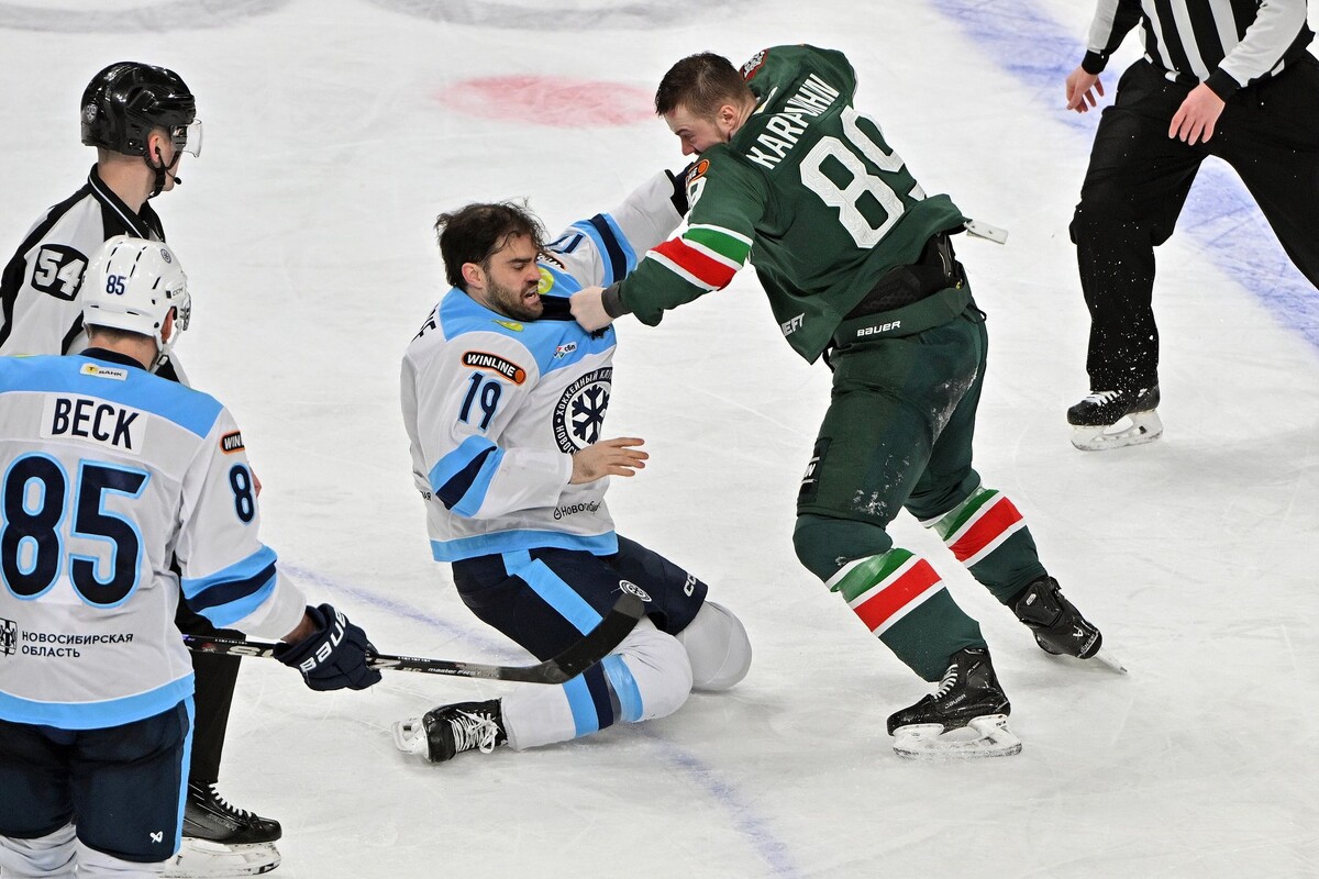 Вау! «Ак Барс» обыграл «Сибирь» (6:3) в домашнем матче регулярного чемпионата КХЛ. Казанцы впервые за шесть лет обыграли соперника на своём льду. Хет-триком отметился Александр Барабанов, дубль оформил Кирилл Семёнов. Проявил себя и Илья Карпухин – в концовке матча он подрался и отправил в нокдаун Энди Адреоффа одним ударом. Матч между «Ак Барсом» и «Сибирью» оказался богатым на события. Хозяева снова упустили преимущество в счете, ведя 2:0, но затем дожали соперника и крупно победили. Эта победа стала первой для «Ак Барса» над «Сибирью» дома с 2020 года. Героев матча несколько – хет-триком отметился Барабанов, дубль оформил Семёнов, хороший матч провел вратарь Максим Арефьев. Эффектно проявил себя и защитник «Ак Барса» Карпухин, который в концовке матча подрался с легионером «Сибири» Андреоффом. Драка получилась очень быстрой – Карпухин отправил соперника в нокдаун после первого же точного удара в челюсть. А началось всё еще возле ворот «Ак Барса»: Карпухин и Андреофф долго о чем-то р