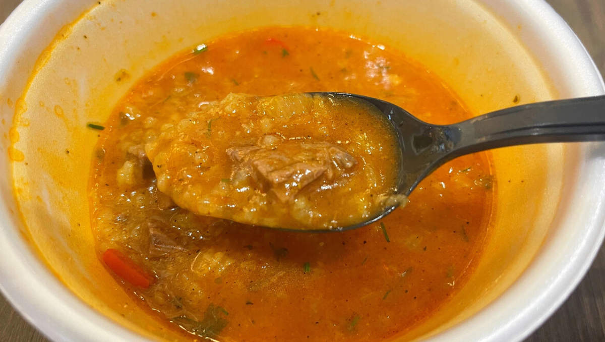 Иногда хочется приготовить что-то простое, но при этом с насыщенным вкусом и ароматом. Такой суп отлично подходит для обычного семейного обеда: он сытный, согревающий и готовится из самых доступных продуктов. Основу блюда составляет говядина и рис, а характерный вкус ему придают томатная паста, чеснок и ароматные специи. Этот суп чем-то напоминает домашние кавказские супы: он получается немного густым, ароматным и очень аппетитным. Особенно хорошо он подходит для холодного времени года, когда хочется чего-то горячего и питательного. Готовится блюдо довольно просто, а весь процесс не требует сложных кулинарных навыков. Сначала подготовим основу для супа — мясо. Говядину нужно отварить в подсоленной воде до полной готовности. Обычно на это уходит около 40–60 минут, в зависимости от качества мяса. Когда говядина станет мягкой, достаем её из бульона и даём немного остыть. Затем нарезаем небольшими кусочками. Бульон можно процедить, чтобы суп получился более прозрачным и аккуратным. Пока