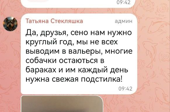 У наших подписчиков было много вопросов по-поводу целесообразности покупки ещё одной и крайней в этом сезоне машины с сеном, и вот, что ответила Татьяна Владимировна: Руководитель приюта говорит, что без соломы в приюте никак до тех пор, пока все собачки не будут перемещены в вольеры на летний период. А значит у нас без вариантов: НУЖНА ЕЩЕ ОДНА МАШИНА!🔥🔥🔥