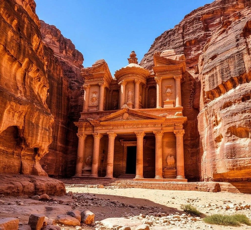 Петра - это чудо света, затерянное в песках Иордании и высеченное прямо в отвесных скалах из красного песчаника, казалось Авроре не творением человеческих рук. Пройдя в город через ущелье, которое гид назвала Сик, она с благословением стала осматривать город, поражаясь древним архитекторам.