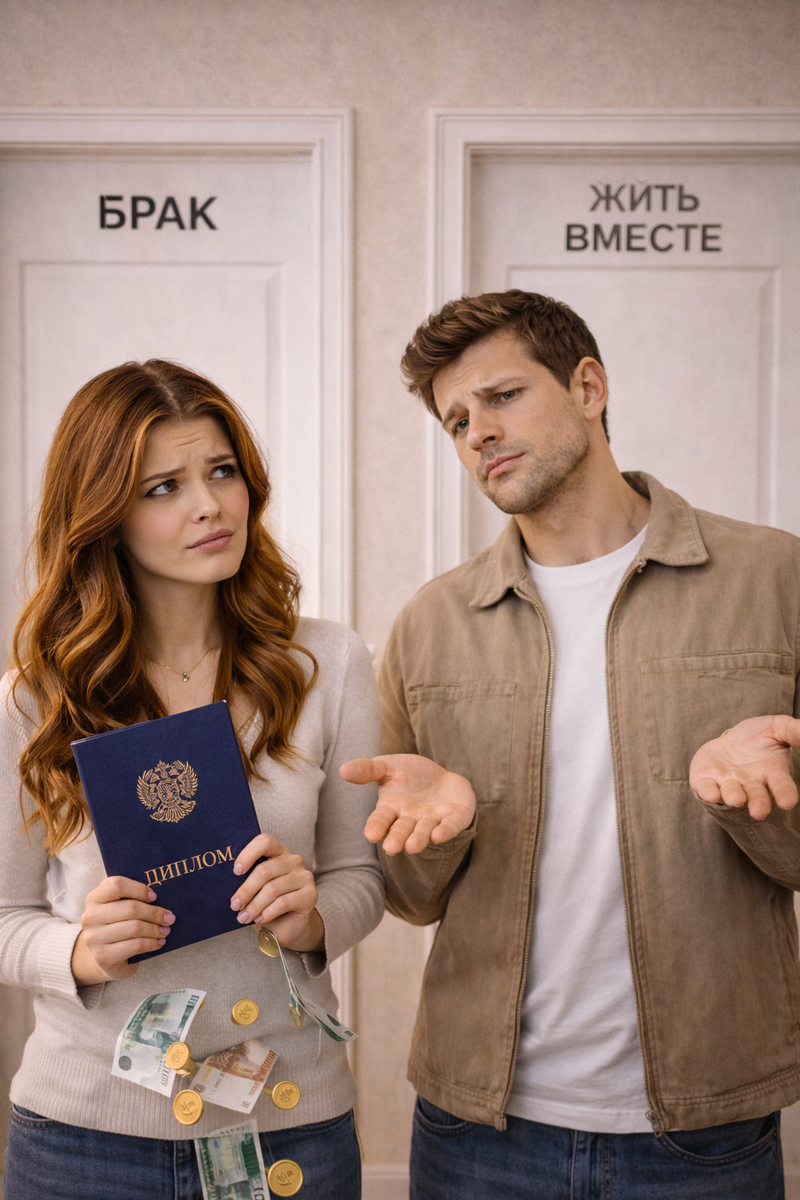 Жить вместе до брака — нормально это или всё-таки нет? Ещё лет двадцать назад большинство отвечало довольно однозначно: сначала свадьба, потом совместная жизнь. Сегодня всё выглядит иначе. Многие пары сначала съезжаются, живут вместе годами, а уже потом решают — стоит ли вообще оформлять отношения. Кто-то называет это проверкой совместимости. Кто-то — удобством. А для кого-то слово «сожительство» до сих пор звучит довольно неприятно. История одной девушки хорошо показывает, почему эта тема вызывает столько споров. Она учится на очном и относится к категории студентов, которым государство выплачивает пособие — как оставшимся без попечения родителей. Но есть условие. Чтобы получать эту поддержку до 23 лет, нельзя быть официально замужем. Если она выйдет замуж сейчас — пособие сразу прекратится. А значит, придётся идти работать. И совмещать работу с учёбой, когда до диплома осталось всего несколько месяцев. Поэтому они с молодым человеком приняли решение жить вместе, но пока не регистриро