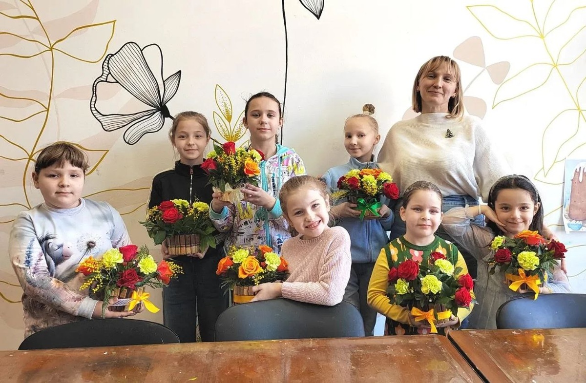 Участники кружка ИЗО и ДПИ "Первоцвет" создали прекрасные букеты для поздравления.