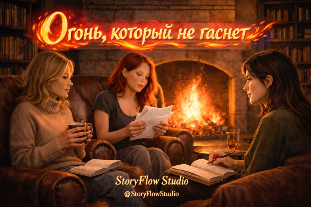 Но вечером пространство менялось. Свет становился мягче. Окна темнели. Камин зажигали не для тепла — для ритма. ... для ритма. Элис всегда зажигала его сама. В тот вечер первой пришла Астра. Она сняла куртку, бросила рюкзак на пол и, не спрашивая разрешения, устроилась прямо на ковре, поджав ноги. В руках она держала распечатанные листы. Немного помятые. С загнутыми углами. Как будто она носила их с собой весь день и перечитывала то и дело. Через несколько минут вошла Леора.