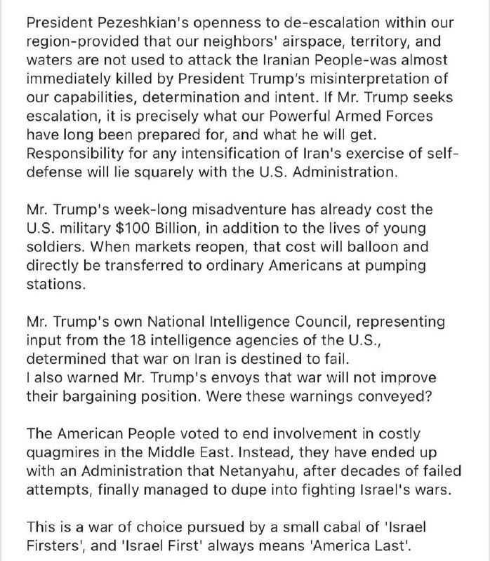 Trump’s week-long war costs US $100 billion — Iran FM Araghchi
