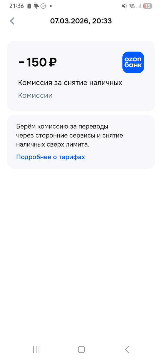 Комиссия за снятие наличных. Кассир попросила разменять деньги в банкомате, я это сделала и потеряла деньги